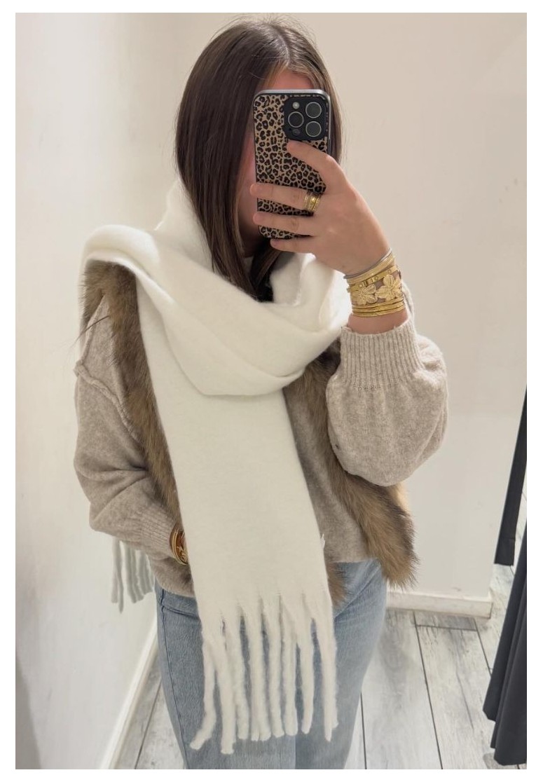 Echarpe blanche à franges