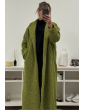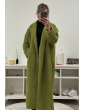 Gilet long en laine bouclée vert à revers
