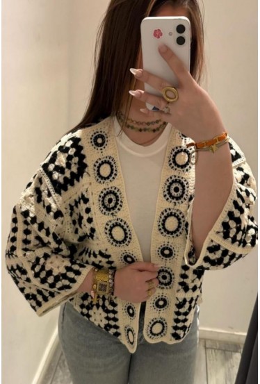 Gilet crochet ouvert noir