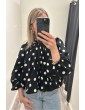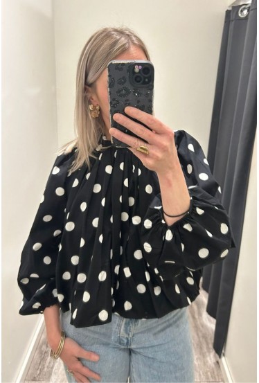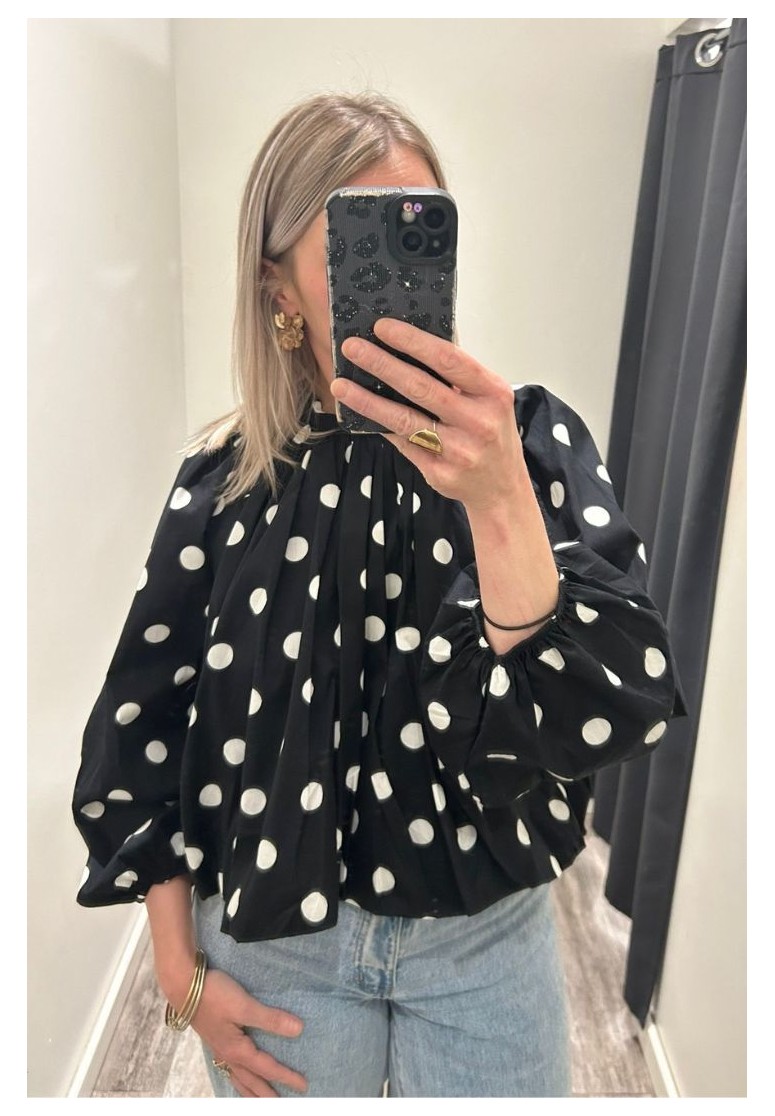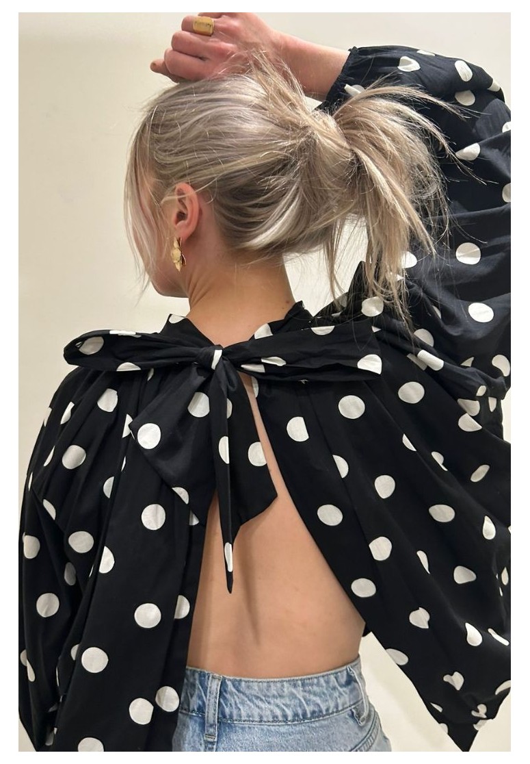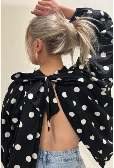 Blouse dos nu noire à pois blancs
