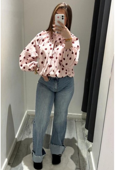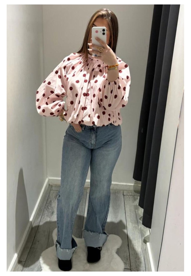 Blouse dos nu rose à pois bordeaux