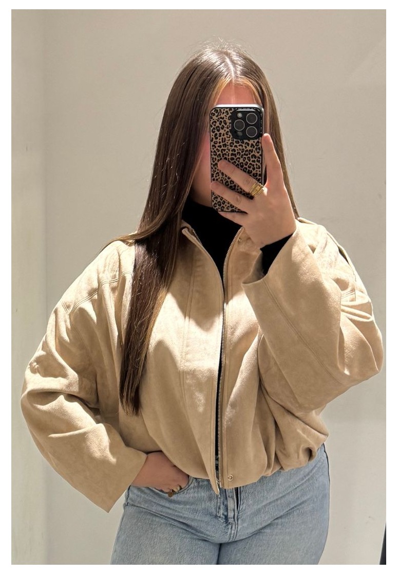 Veste bomber effet daim à col beige