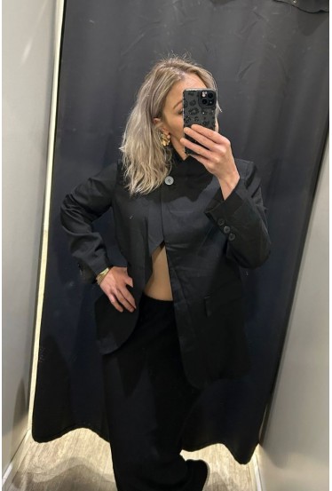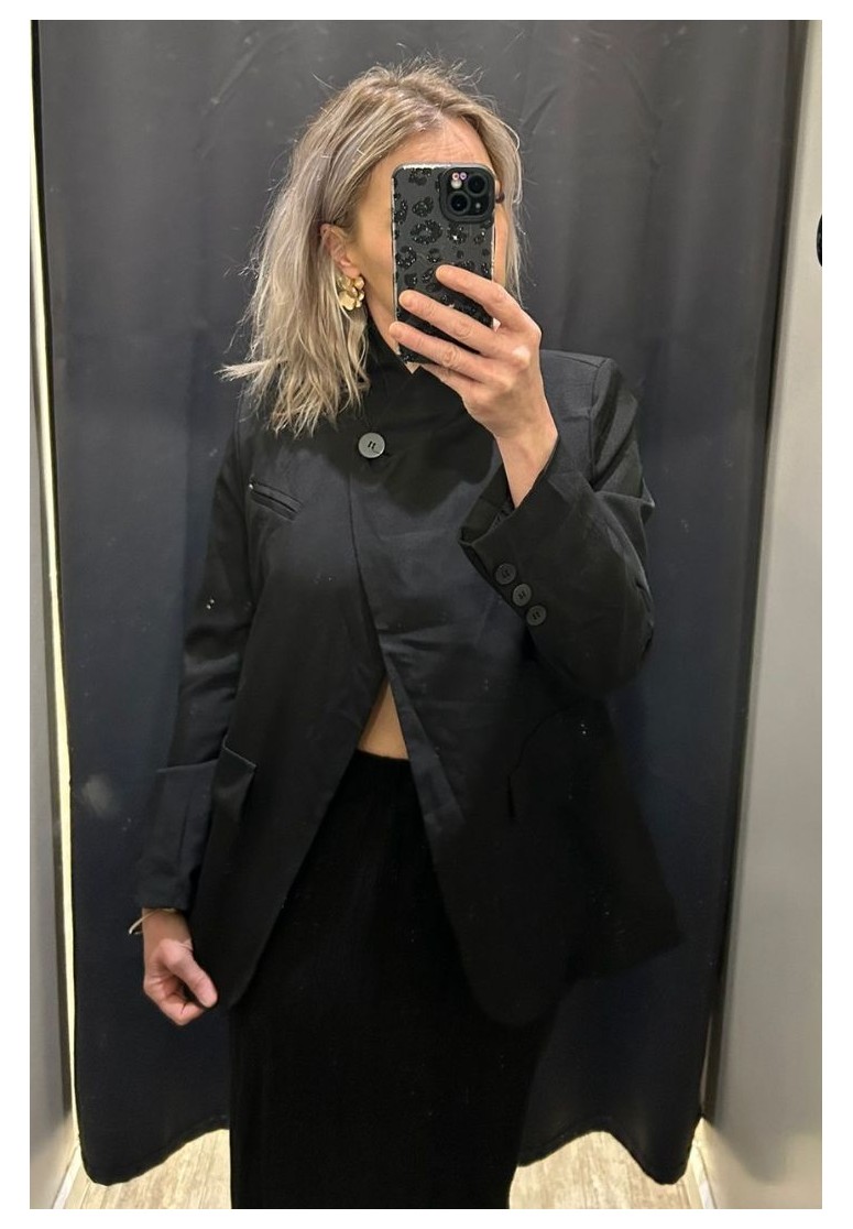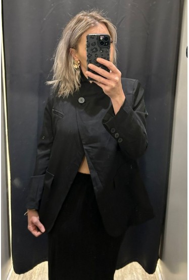 Veste de blazer col montant asymétrique noire